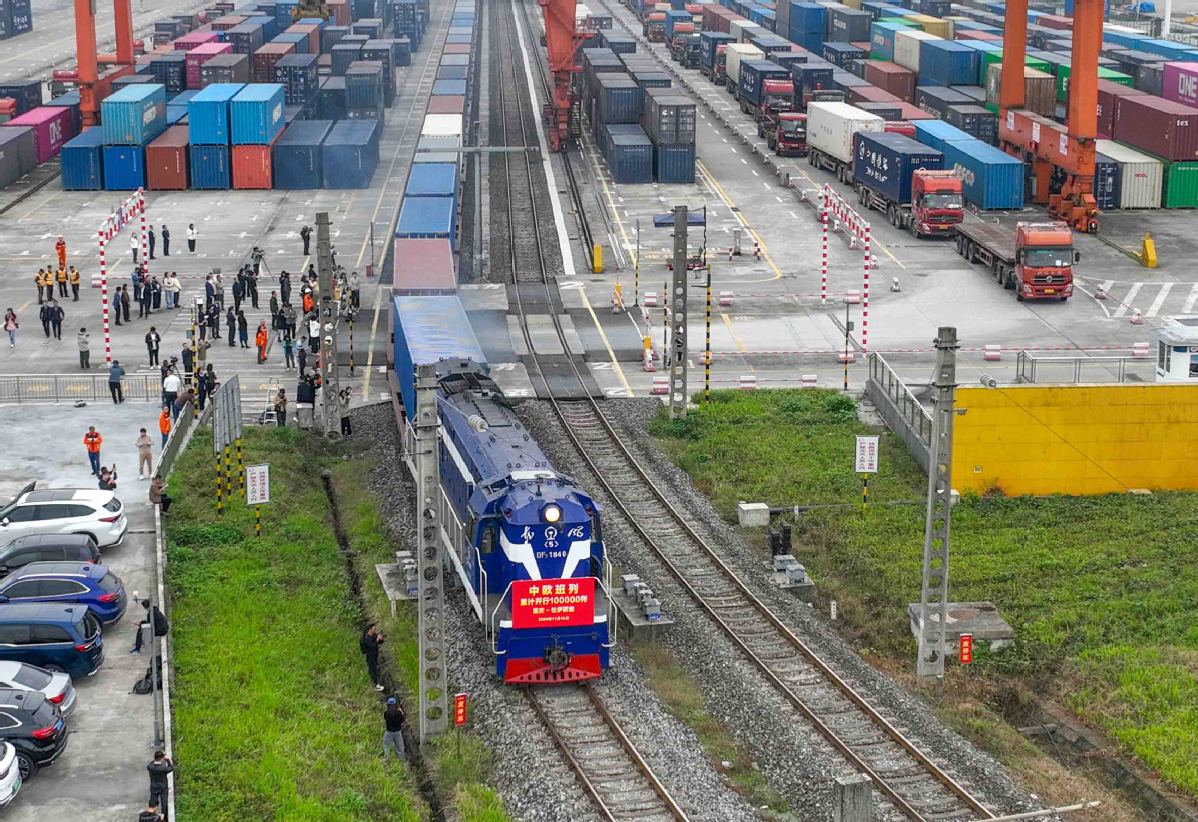 A China-Europe Railway Express departs from Chongqing to Duisburg, Germany, on Nov 15. ZHANG JINHUI/FOR CHINA DAILY