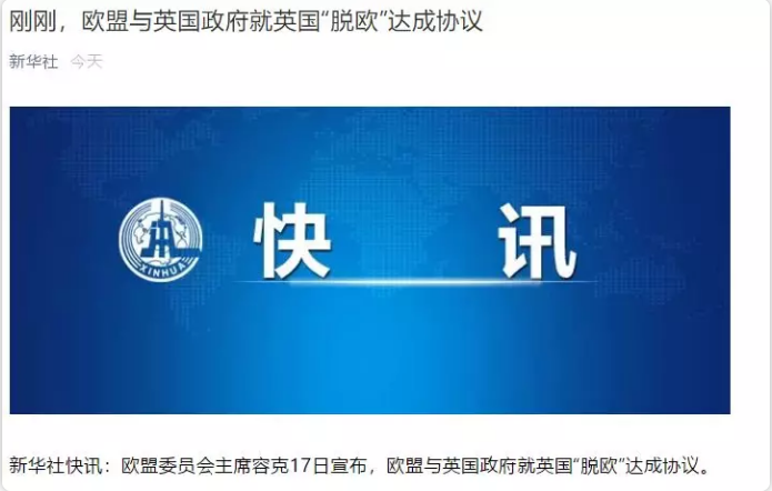 北京时间10月17日下午17:35分左右,欧盟委员会总统主席让-克洛德·容克在推特上宣布,欧盟和英国已经达成了“公平和平衡的协议”。