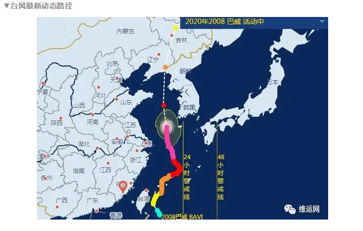 中央气象台8月26日10时发布台风橙色预警! 今年第8号台风“巴威”(强台风级)的中心今天(26日)上午10点钟位于黄海南部海面上,预计将于27日上午在辽宁东部到朝鲜西部一带沿海登陆(台风级,12-13级,33-38米/秒),中心附近最大风力14级。登陆后逐渐转为北偏东到东北方向移动,穿过东北三省。或成为1949年以来登陆辽宁最强的台风! 大连集装箱码头调度中心发布紧急通知:
